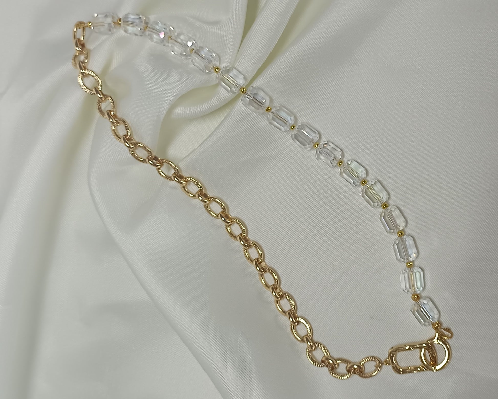 Collier asymétrique avec cristaux autrichiens et chaîne plaquée or 18 carats.