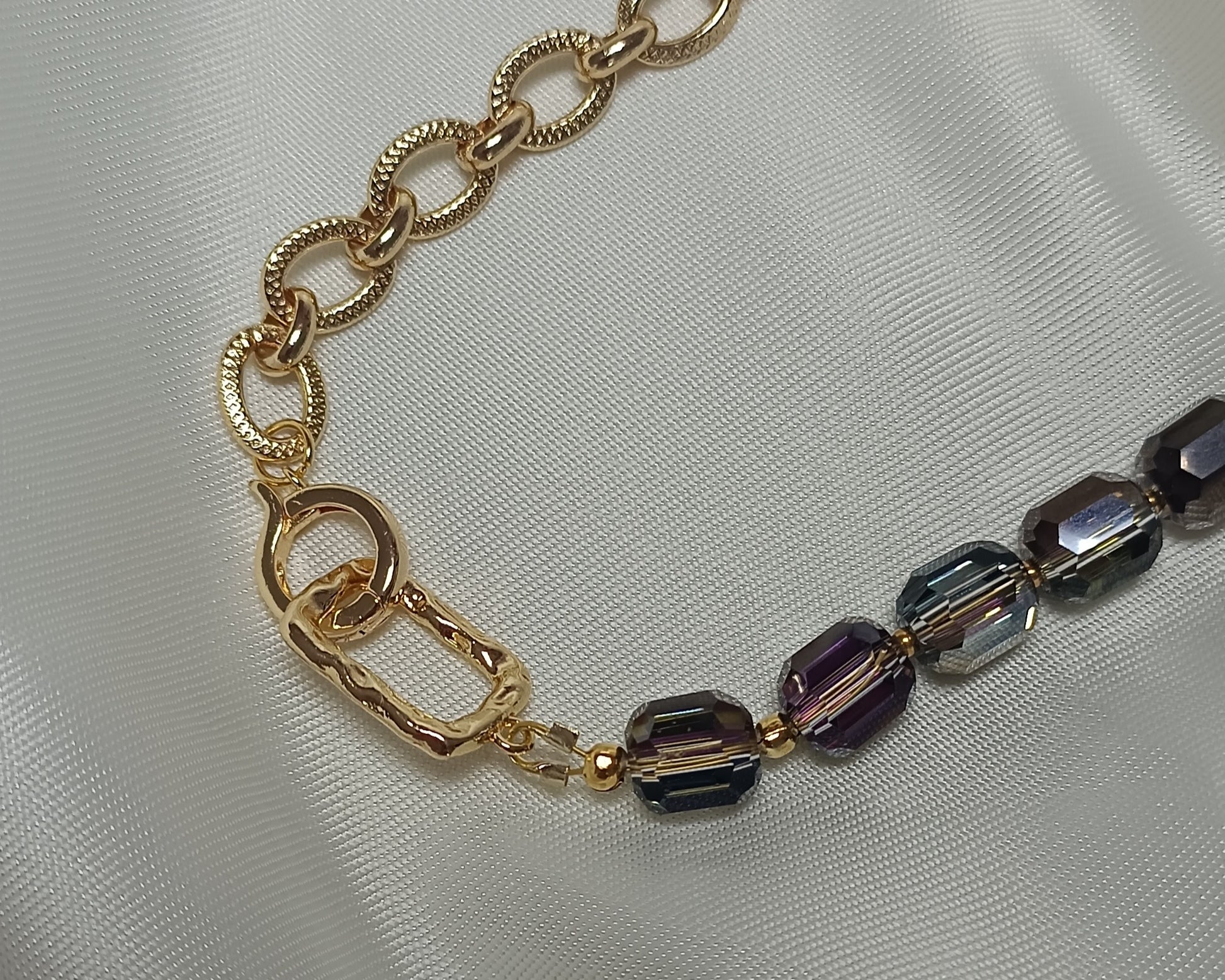 Collier asymétrique avec cristaux autrichiens et chaîne plaquée or 18 carats.