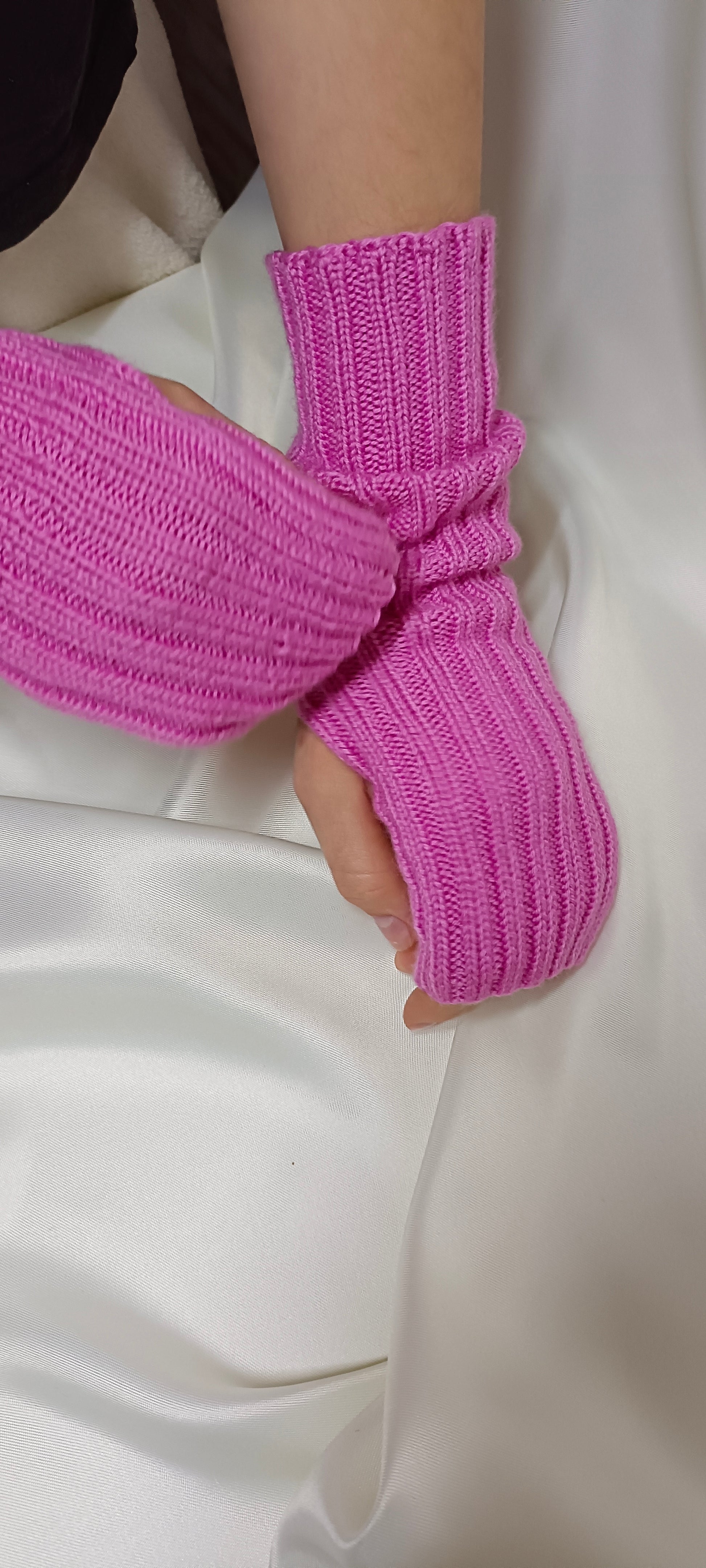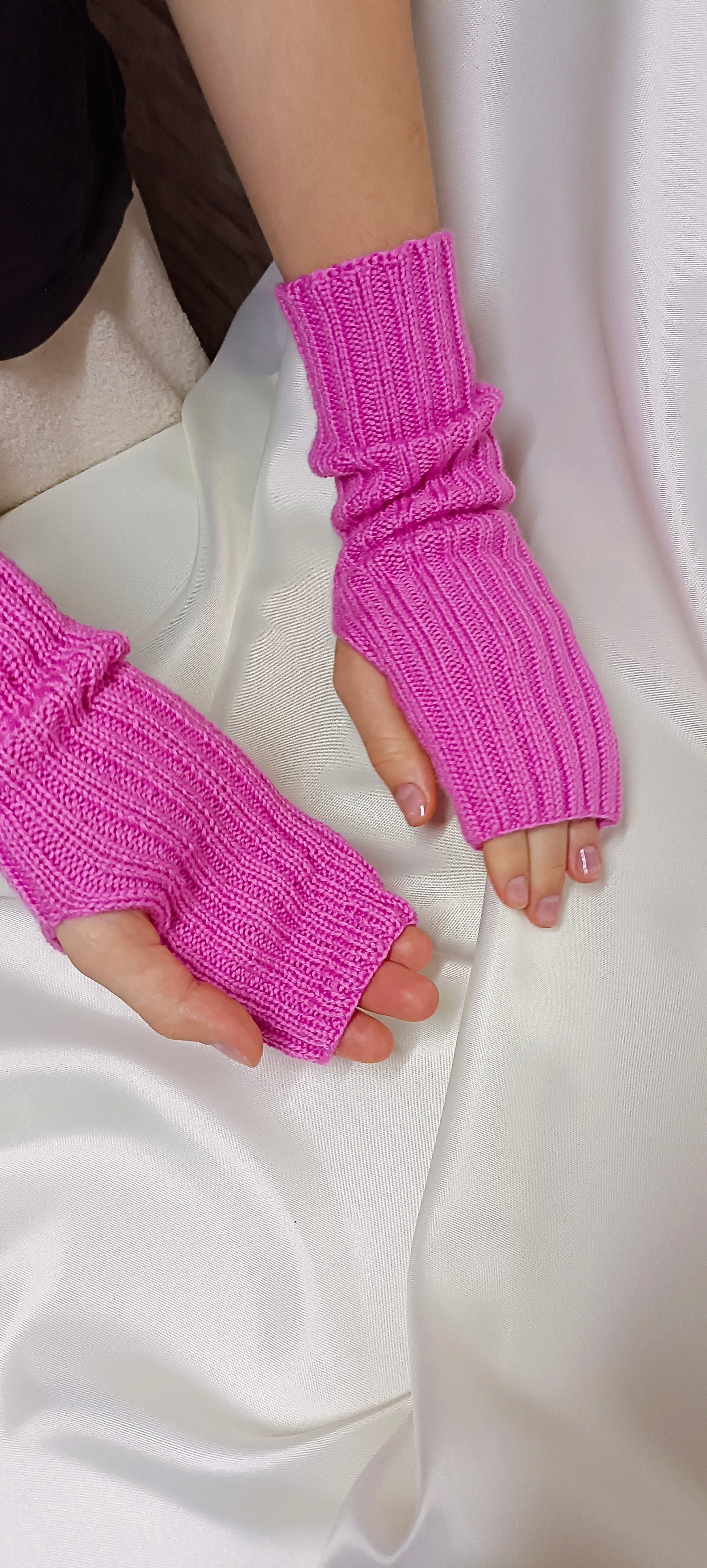 Modèle unique tricoté en pure laine mérinos italienne extra-fine, spécialement conçu pour la confection de mitaines. Réalisé sans coutures, il garantit un confort exceptionnel. Couleur rose.