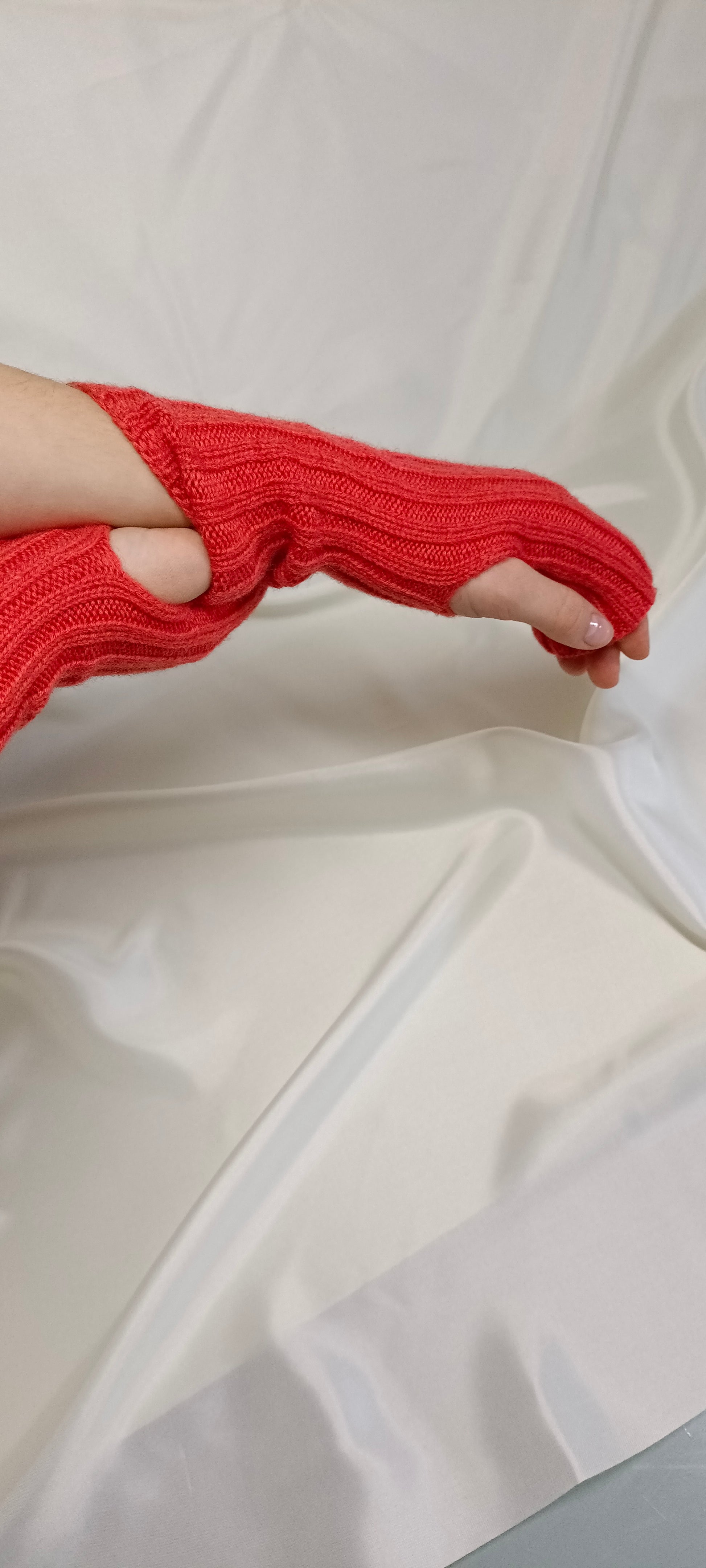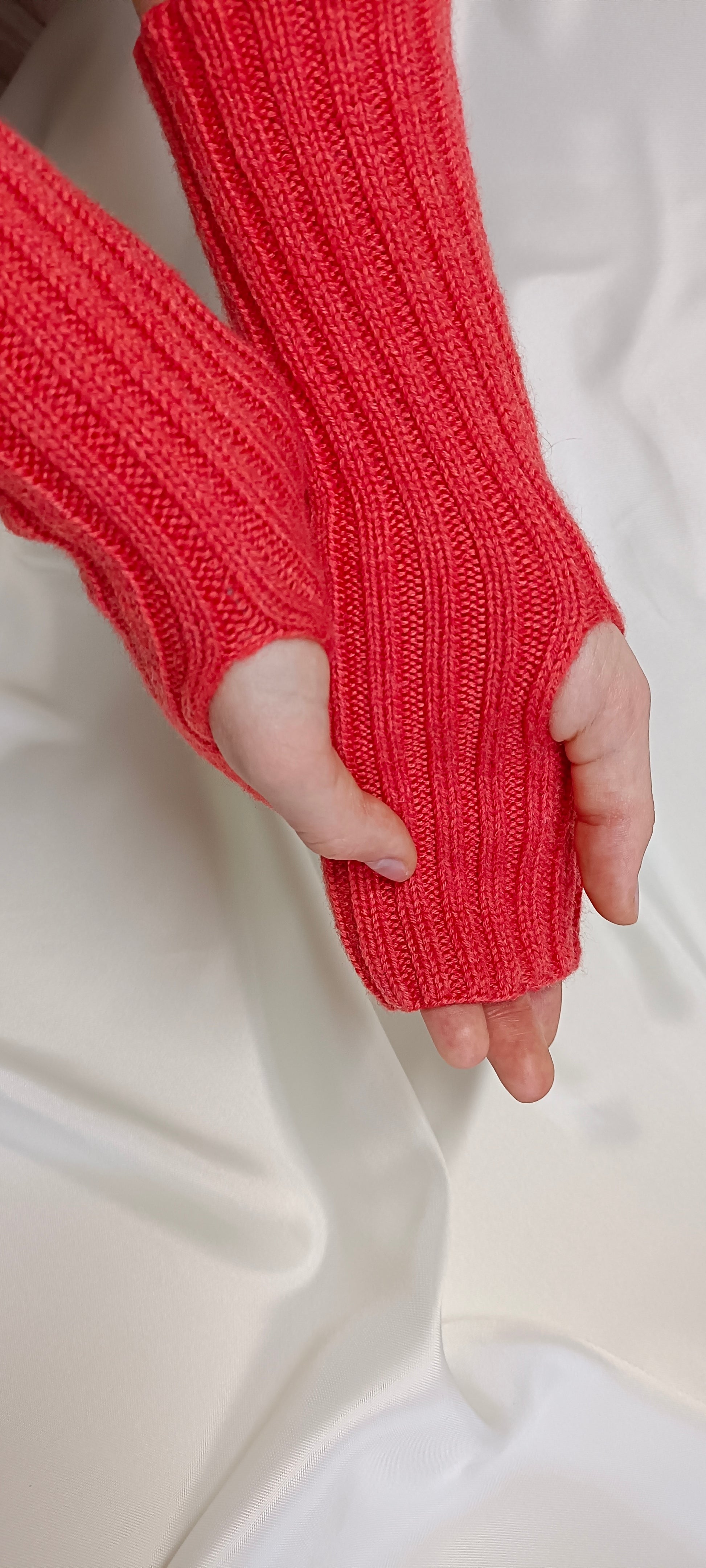 Modèle unique tricoté en pure laine mérinos italienne extra-fine, spécialement conçu pour la confection de mitaines. Réalisé sans coutures, il garantit un confort exceptionnel. Couleur rouge clair.